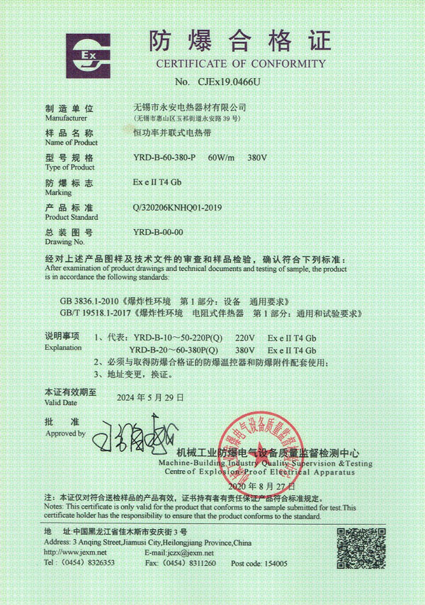 防爆證-恒功率電熱帶
