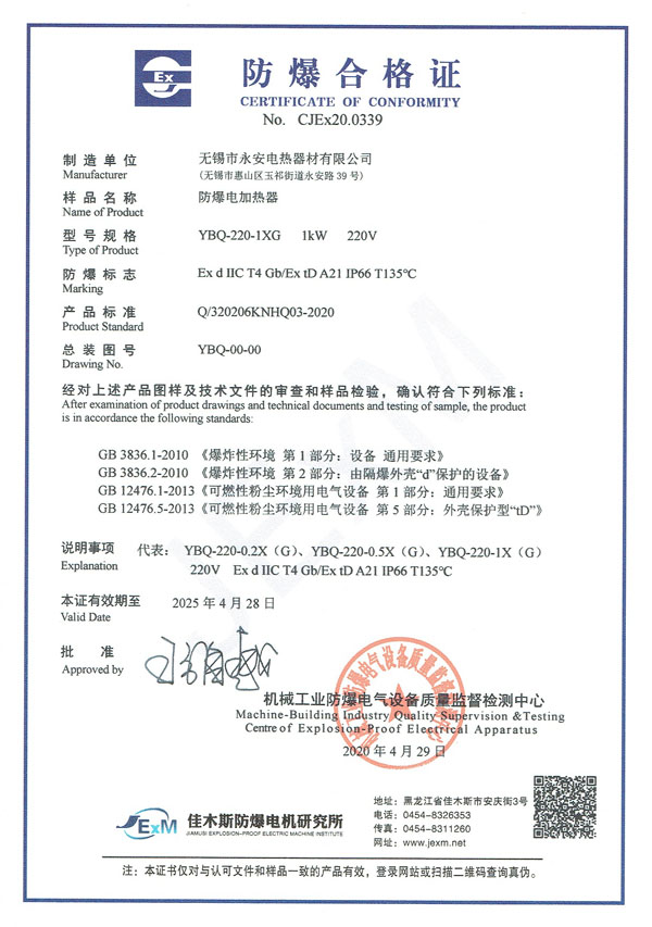防爆證-防爆電加熱器