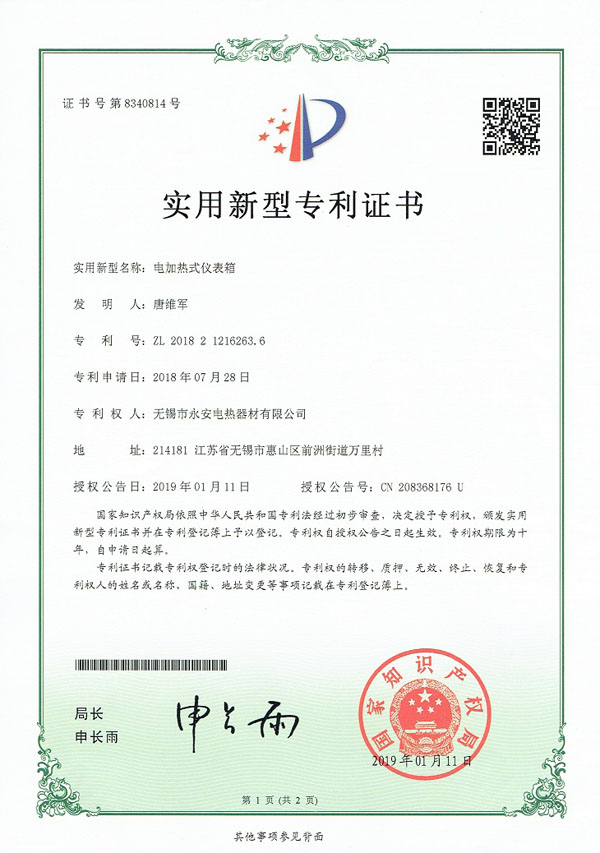 專利實用-箱體防爆電加熱器